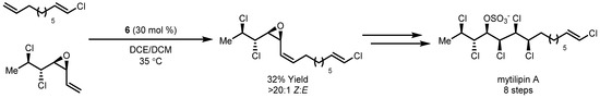 - Chung, W.; Carlson, J.S.; Bedke, D.K.; Vanderwal, C.D. A Synthesis of the Chlorosulfolipid Mytilipin A via a Longest Linear Sequence of Seven Steps. Angew. Chem. Int. Ed. 2013, 52, 10052–10055. [Google Scholar] [CrossRef] [PubMed]