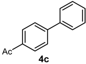 A 10 mL glass vessel was charged with 1-GO (0.002 mol % Pd, 0.198 mg), 4-bromoanisole (156.5 μL, 1.25 mmol, 1 eq), phenylboronic acid (190.20 mg, 1.56 mmol, 1.25 eq), K2CO3 (345.50 mg, 2.5 mmol, 2 eq) and MeOH/H2O: 3/1 (3 mL). The vessel was sealed with a pressure cap and the mixture was stirred at room temperature for 20 h. Then, H2O (5 mL) and EtOAc (5 mL) were added and the liquid mixture was filtered with cotton and extracted with EtOAc (3 × 10 mL). The organic layers were dried over MgSO4 and concentrated under reduced pressure. The crude residue was purified by flash chromatography (silica gel, Hexane/EtOAc: 95/5) to obtain 0.167 g of pure 4a (73% yield).
