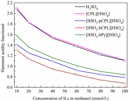 - Shukla, S.K.; Kumar, A. Do protic ionic liquids and water display analogous behavior in terms of Hammett acidity function. Chem. Phys. Lett. 2013, 566, 12–16. [Google Scholar] [CrossRef]