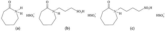 - Du, Z.; Li, Z.; Guo, S.; Zhang, J.; Zhu, L.; Deng, Y. Investigation of Physicochemical Properties of Lactam-Based Brønsted Acidic Ionic Liquids. J. Phys. Chem. B 2005, 109, 19542–19546. [Google Scholar] [CrossRef] [PubMed]