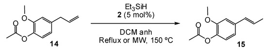 Isomerization of acetyleugenol (14) with Et3SiH and catalyst 2.