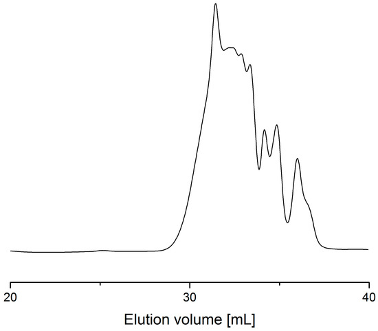 GPC eluogram of glycerol oligomers obtained with K2CO3 (4 wt %) as a catalyst with the microwave optimized process.