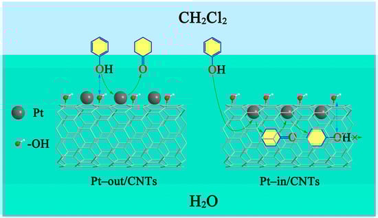 - Yang, X.; Yu, X.; Long, L.; Wang, T.; Ma, L.; Wu, L.; Bai, Y.; Li, X.; Liao, S. Pt nanoparticles entrapped in titanate nanotubes (TNT) for phenol hydrogenation: The confinement effect of TNT. Chem. Commun. 2014, 50, 2794–2796. [Google Scholar] [CrossRef] [PubMed]