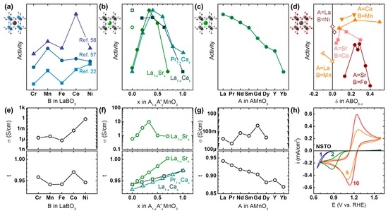 Section 5). The focus on qualitative trends in this section has allowed including a wider range of studies to derive trends. Moreover, this focus facilitates a facile connection between activity for ORR and the components of the perovskite structure ABO