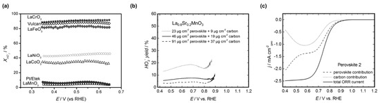 Figure 2a. In all three studies, Mn and Co at the B-site was more active than both Cr and Fe. On the other hand, relative differences between these elements and the most active B-site depended strongly on the study; possible reasons are: the used carbon additive, differences in surface roughness and area of the oxide (if not included in normalization), oxygen stoichiometry and phase purity. Ni-based perovskites are especially prone to phase segregation during synthesis [