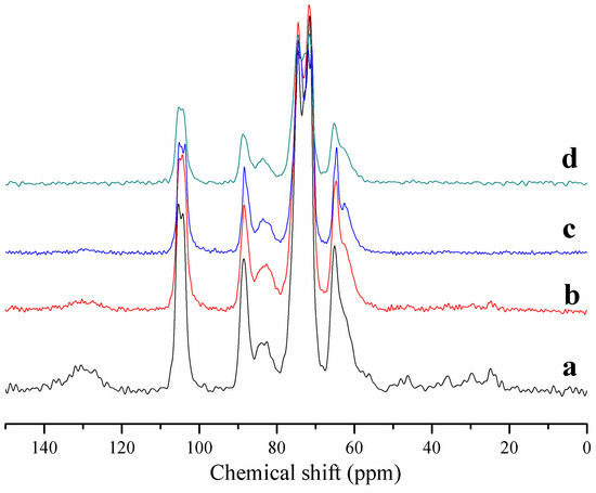 - Pu, Y.; Ziemer, C.; Ragauskas, A.J. CP/MAS 13C NMR analysis of cellulase treated bleached softwood kraft pulp. Carbohydr. Res. 2006, 341, 591–597. [Google Scholar] [CrossRef] [PubMed]