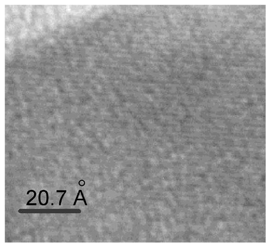 Chin et al. [47] confirmed the formation of the Pd-Zn alloy in the reduced Pd/ZnO catalyst by XRD, TPR and TEM characterization techniques. Figure 5 shows the high resolution TEM graph of a spent 16.7 wt.% Pd/ZnO catalyst. The presence of the Pd-Zn alloy was verified by the distinct d-lines of the small crystallites. It can also be concluded that Pd and Zn formed a highly ordered crystallites structure because the d-lines are continuous over an extended area as shown in Figure 5.