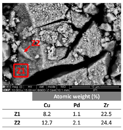 SEM images of the CuPd/ZrO2 catalyst with EDX quantification (Adapted from [64], Copyright 2017, Elsevier).
