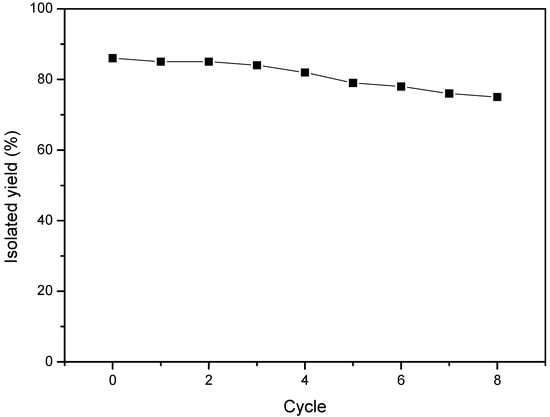 Generally, the immobilization is a powerful tool to enhance the reusability and stability of enzymes in modern biotechnology [41,42,43]. In this study, MML was immobilized on SBA-15 mesoporous silica via physical adsorption according to the previous study in our Lab [44,45], and the immobilized MML was used in the synthesis of indolyl 4H-chromenes. Our results indicated that the immobilized MML showed a lower catalytic performance than free MML (Table 4), but exhibited a satisfactory reusability (Figure 4). When the immobilized enzyme was reused, a slight loss of the catalytic activity could be observed, which may be due to the leakage of protein from SBA-15. Considering the operational simplicity of the immobilized enzyme on magnetic nanoparticles [46,47,48], research on using immobilized MML attached onto the magnetic Fe3O4 nanoparticles by covalent attachment for recycling is currently undergoing and will be reported in the future.