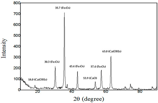 The X-ray diffractometer (XRD) pattern of the synthesized catalyst, nano-Ca(OH)2/Fe3O4.