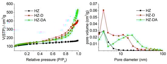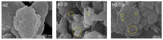 SEM micrographs of HZ, HZ-D, and HZ-DA.