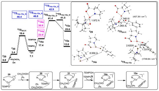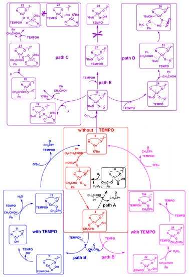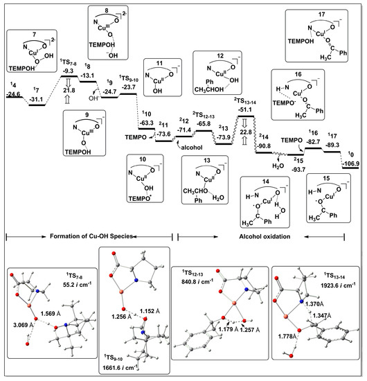 - Cheng, L.; Li, J.; Zhang, Q.C.; Ma, L.S.; Yang, J.C. DFT studies on the mechanism of alcohol oxidation by the (bpy)CuI-TEMPO/NMI catalytic system. Dalton Trans. 2015, 44, 7395–7403. [Google Scholar] [CrossRef] [PubMed]