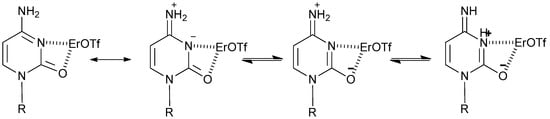 Diagram of tautomeric forms of cytosine-Er(III) coordinate.