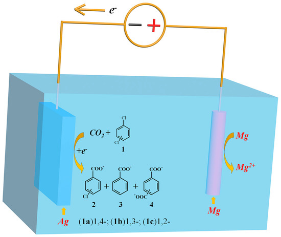 - Lan, Y.C.; Wang, H.; Wu, L.X.; Zhao, S.F.; Gu, Y.Q.; Lu, J.X. Electroreduction of dibromobenzenes on silver electrode in the presence of CO2. J. Electroanal. Chem. 2012, 664, 33–38. [Google Scholar] [CrossRef]