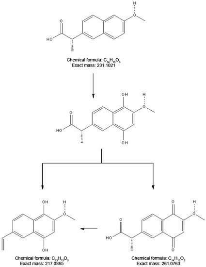 Proposed conversion products from the CPO-catalyzed oxidation of naproxen.