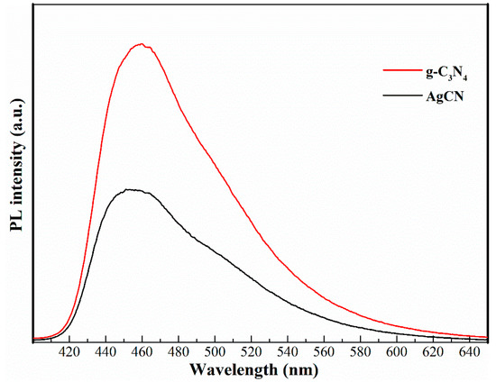 Photoluminescence spectrum of g-C3N4 and AgCN photocatalysts.