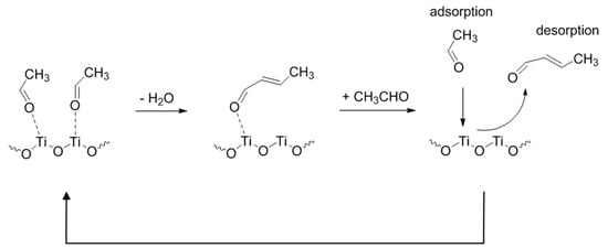 - Rekoske, J.E.; Barteau, M.A. Competition between Acetaldehyde and Crotonaldehyde during Adsorption and Reaction on Anatase and Rutile Titanium Dioxide. Langmuir 1999, 15, 2061–2070. [Google Scholar] [CrossRef]