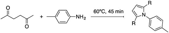 Optimum reaction conditions were studied employing 4-toluidine and acetonylacetone as a test reaction under solvent-free conditions at 60 °C for 45 min to obtain the pyrrole derivative (Scheme 2).