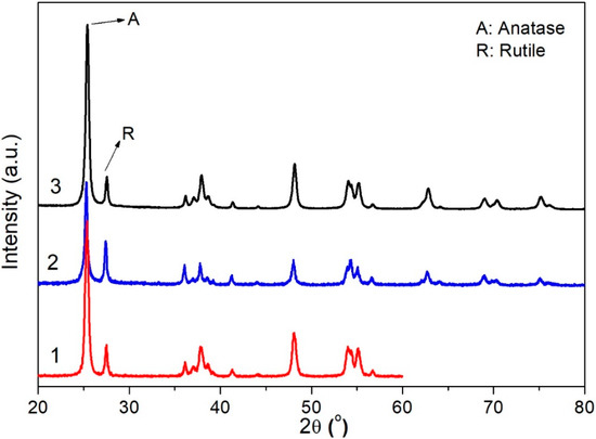 - Thamaphat, K.; Limsuwan, P.; Ngotawornchai, B. Phase Characterization of TiO2 Powder by XRD and TEM. Conf. Proc. 2008, 361, 357–361. [Google Scholar]