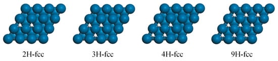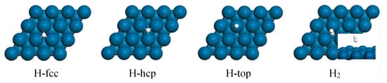 It is reported that the lateral interactions among H(a) are mainly derived from the short-range pair interaction by the nearest neighbor (NN) adsorbates through surface, and the interactions among the next nearest neighbor (NNN) H(a) adatoms are generally negligible [21,45]. Therefore, the lateral interactions among the NN H(a) are calculated by DFT theory in this work. Since the lateral interactions among H(a) atoms are relatively weak, four models shown in Figure 8 are designed to obtain the accurate value. The lateral interaction energy is calculated by the following equation: , where n is the number of H(a); m is the number of pairwise interactions per H(a) atom. The corresponding parameters are listed in Table 2.