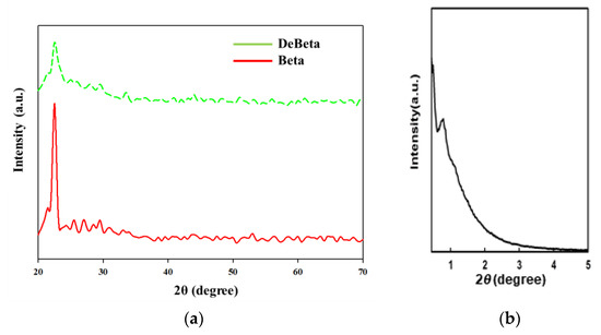 XRD patterns of (a) Beta, DeBeta and (b) AMF.