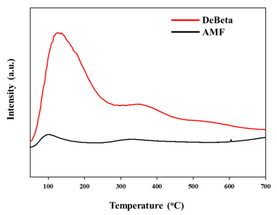 NH3-TPD curves of DeBeta and AMF.