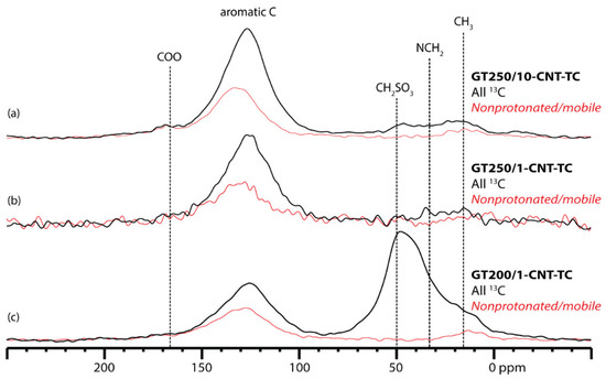 | GT250/10-CNT-TC | Uniform 13C: taurine | Pyrolysis temperature of 250 °C Ramp of 1 °C from r.t. to 120 °C,10 °C from 120 °C to 250 °C |