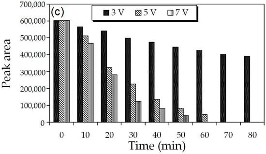 Figure 1c showed that the effect of applied voltage on the removal% of HDZ. Comparing the removal% of 3, 5, and 7 V, it is obvious that the efficiency of electrochemical treatment at 7 V was greater than that of 3 V. However, this finding was reported by Mussa et al. [25].