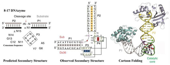 - Silverman, S.K. Catalytic DNA: Scope, Applications, and Biochemistry of Deoxyribozymes. Trends Biochem. Sci. 2016, 41, 595–609. [Google Scholar] [CrossRef] [PubMed]