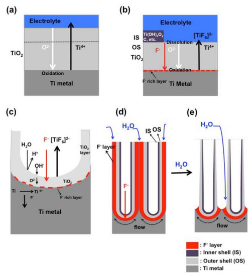 - Yin, H.; Liu, H.; Shen, W.Z. The large diameter and fast growth of self-organized TiO2 nanotube arrays achieved via electrochemical anodization. Nanotechnol. 2010, 21, 035601. [Google Scholar] [CrossRef] [PubMed]