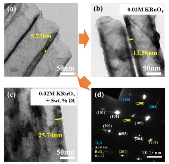 - Shin, S.; Kim, K.; Choi, J. Fabrication of ruthenium-doped TiO2 electrodes by one-step anodization for electrolysis applications. Electrochem. Commun. 2013, 36, 88–91. [Google Scholar] [CrossRef]