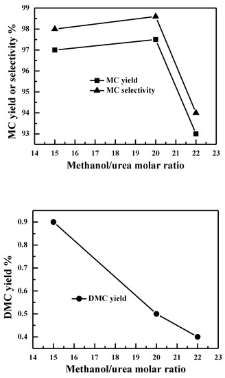 In the synthesis of 3 and 5, the results with varied ethanol or butanol/urea molar ratio were shown in Table 4. It was found that the suitable ethanol/urea molar ratio is 15.7 and the butanol/urea molar ratio is 13 for the synthesis of EC and BC, respectively.
