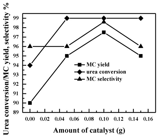 As above mentioned in Table 2, almost same urea conversion, 1–6 yields could be obtained in the absence of catalyst or SiO2 as the catalyst. Therefore, there was no catalyst was used for blank test for the effect of amount on synthesis of MC, EC, and BC.