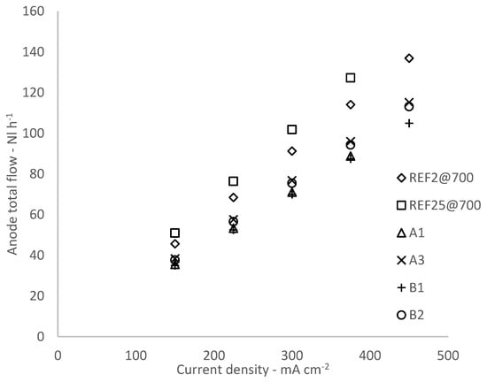 21], may come from a positive effect on ASR of total gas flow entering the anode, as reported in