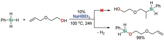 - Zaranek, M.; Witomska, S.; Patroniak, V.; Pawluć, P. Unexpected catalytic activity of simple triethylborohydrides in the hydrosilylation of alkenes. Chem. Commun. 2017, 53, 5404–5407. [Google Scholar] [CrossRef] [PubMed]