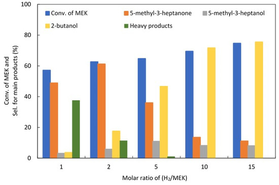 2.2.2. Effect of H2/MEK Molar Ratio