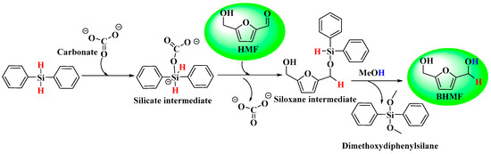 The Supplementary Materials are available online at http://www.mdpi.com/2073-4344/8/12/633/s1. Figure S1. LC-MS spectrum of the siloxane intermediate obtained in the hydrogenation of HMF to BHMF; Figure S2. Images of the K2CO3-catalyzed hydrogenation of HMF to BHMF using PMHS as H-donor; Figure S3. GC-MS spectrum of BMHF obtained from hydrogenation of HMF; Figure S4. GC-MS spectrum of dimethoxydiphenylsilane obtained from the interaction of Ph2SiH2 and MeOH; Table S1. Effect of different hydrosilanes on the hydrogenation of HMF to BHMF.