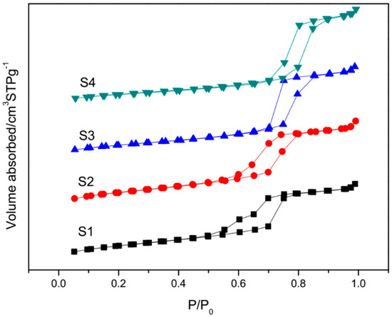 N2 adsorption-desorption isotherms of Co supported on SBA–15 with different pore sizes.