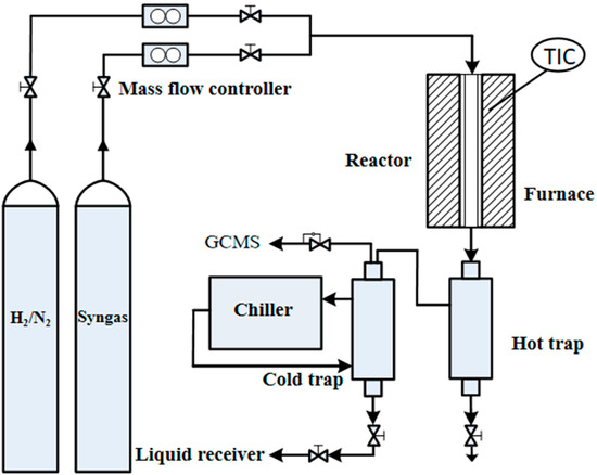 The Fischer–Tropsch synthesis tests were performed in a fixed-bed reactor (diameter is 1/2 inch), which was made with stainless-steel, as shown in Figure 11. Before each experiment, 0.5 g of catalyst was uniformly mixed with quartz sand and was loaded in the reactor. The catalyst was reduced by 50% H2/N2 at an atmospheric pressure. During the reduction, the temperature of catalyst was increased to 400 °C with a heating rate of 1 °C min−1 and was maintained at 400 °C for 6 h. After the reduction, the heating was stopped and the temperature was naturally decreased to 120 °C under 50% H2/N2. Subsequently, the pressure of the reactor was slowly increased up to 2 MPa by feeding the reactant gases (64% H2: 32% CO: balanced N2). Lastly, the temperature of the catalyst was heated to 220 °C (or other designed temperature) at a controlled heating rate of 1 °C/min. In each run, the time of the Fischer–Tropsch reaction was about 10–15 h to evaluate the stabilization and activity of the catalyst. During the reaction, the effluent gases were successively passed two traps to collect waxes, water and the residual products. The off-gas after the cold trap was analyzed by an Agilent 8990 chromatograph.