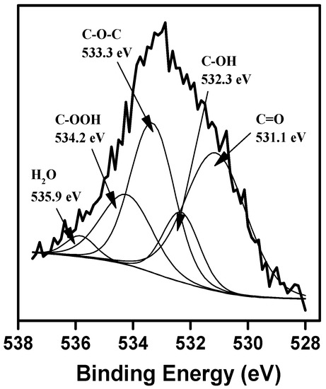 Deconvolution of O 1s spectra of Pd/C catalyst reduced at 300 °C.
