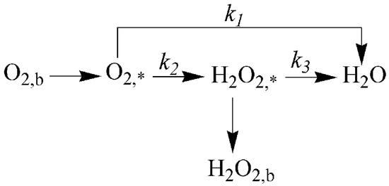 Although the above data provide helpful information on ORR kinetics, specific insights into more detailed oxygen reduction routes are still needed. For example, the four-electron transfer process has two possible transfer pathways: (1) a “step-by-step” four-electron pathway (k2 = k3, k1 = 0), and (2) a direct four-electron pathway (k1 >> k2, k3 = 0). The mechanisms proposed by Damjanovic et al. are shown in Figure 9; k1, k2, and k3 are the rate constants for each step [37].
