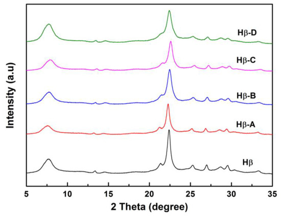 XRD patterns for parent Hβ and the hierarchical Hβ obtained by different post-treatment methods.