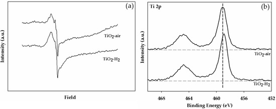 - Suriye, K.; Praserthdam, P.; Jongsomjit, B. Control of Ti3+ surface defect on TiO2 nanocrystal using various calcination atmospheres as the first step for surface defect creation and its application in photocatalysis. Appl. Surf. Sci. 2007, 253, 3849–3855. [Google Scholar] [CrossRef]