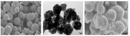The phase identification of the sample was performed by using XRD and using a D/max-RB diffractometer (Rigaku, The Woodlands, TX, USA). The size, morphology, and chemical composition of the spherical particles were determined by using FE-SEM (JEOL-6701F, JEOL, Tokyo, Japan) equipped with an energy dispersive X-ray spectroscopy (EDS). In order to measure the surface area and porosity of samples, N2 adsorption measurements were conducted with a Micromeritics Autosorb-iQ 2ST/MP instrument (Quantachrome Instruments, Boynton Beach, FL, USA).