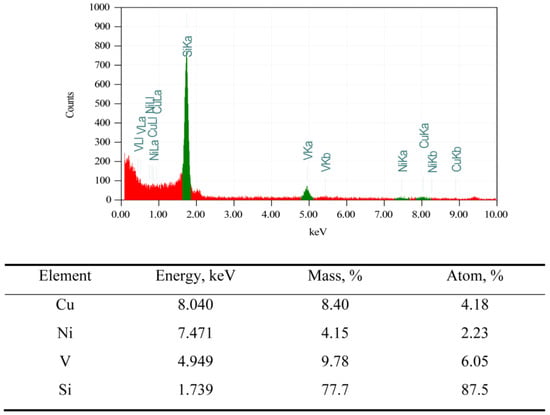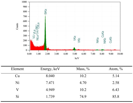2.1.2. CuO-NiO@VSiO and Cu-Ni@VSiO Microstructure Characterization