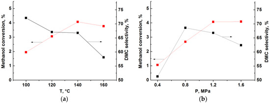 | Temperature, °C | Methanol Conversion, % | DMC Selectivity, % |