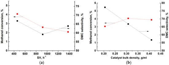 | Catalyst | T, °C | P, MPa | Reactor Type | MeOH Conversion, % | DMC Selectivity | Ref. |