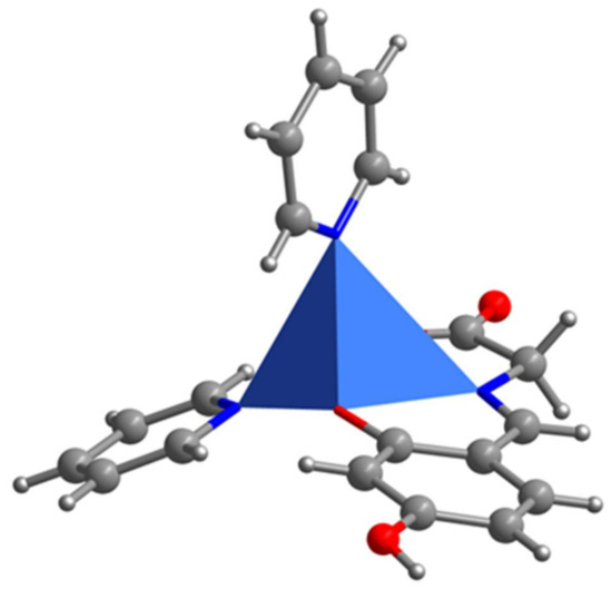 According to our previous related work [33], 2,4-dihydroxybenzaldehyde (1 mmol) was dissolved in 30 mL of EtOH and subsequently mixed with glycine (1 mmol) and NaOH (1 mmol). The mixture was refluxed for 3 h. Afterward, the mixture was cooled to room temperature. To this mixture, copper chloride (1 mmol) was added, and the mixture was further stirred for another 2 h. Finally, the green solid formed was filtered and washed with ethanol (5 mL × 3) and then dried in air. The green solid was dissolved with pyridine, and stirred for 30 min, filtered, and left at room temperature. The green crystals of Complex 2 were formed after a few days and collected by filtration. Yield: 64%. Anal. calcd. (%) (Found) for C19H17CuN3O4: C, 55.00 (55.17); H, 4.13 (4.25); N, 10.13 (10.09). IR spectrum, ν (cm−1): 3070 (m), 2618 (m), 1631 (s), 1594 (m), 1533 (m), 1448 (m), 1228 (s), 1178 (m), 1074 (s), 851 (s), 754 (s), 708 (m), 595 (s), 500 (m).