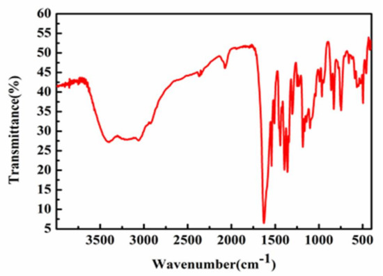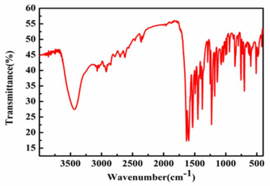 Fourier transform infrared spectroscopy (FT-IR) spectroscopy can provide valuable information for the analysis of Schiff base complexes [17]. As shown in Figure 7 and Figure 8, strong peaks were observed at 1625 and 1538 cm−1 for Complex 1 and at 1631 cm−1 and 1594 cm−1 for Complex 2 due to imine νC=N stretching. The appearance of two peaks for the imine groups in Complexes 1 and 2 indicates the nature of Schiff base ligands [18].
