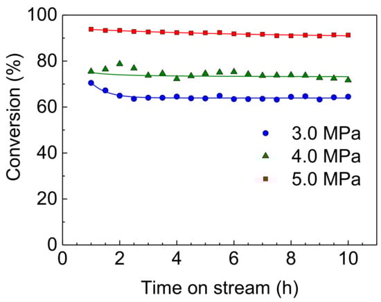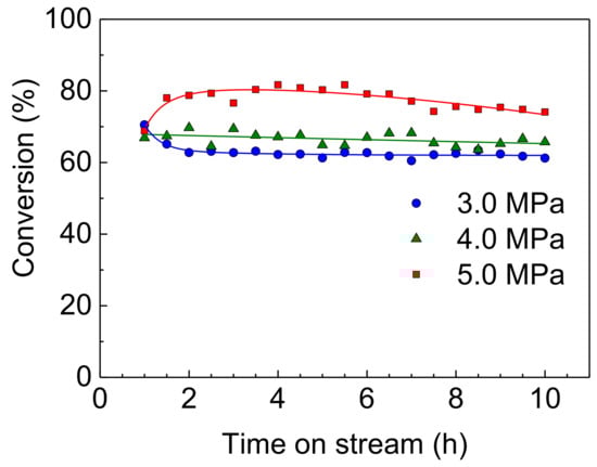 2.3.2. Effect of Reaction Pressure on Catalytic Activity